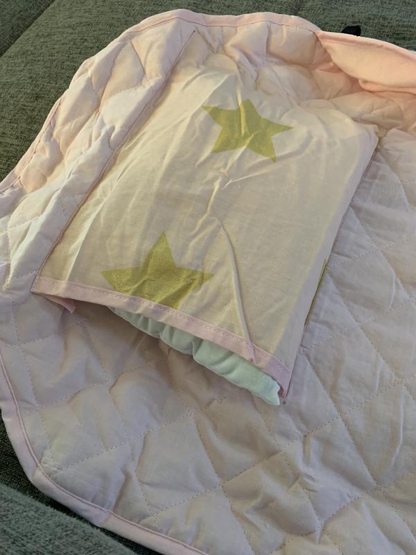 This mat is great for nap time at daycare! It’s both cute for my little one, while being comfortable! I also love how easy it is to throw in the washing machine and clean often. The pillow seems to be very comfortable- but if anything, I do wish the bottom quilted part was a little thicker- but overall, I’m very happy with this mat and I would buy again!