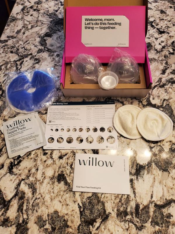 • Registry must have: Willow Find Your Flow kit includes: (2) Soothing Silver Nursing Cups, (2) Catch-All Milk Cups, (6) Cooling Gel Nipple Pads, (10) Reusable Breast Pads, (2) Hot and Cold Breast Therapy Packs, (1) Nipple Sizing Tool