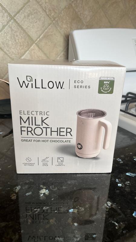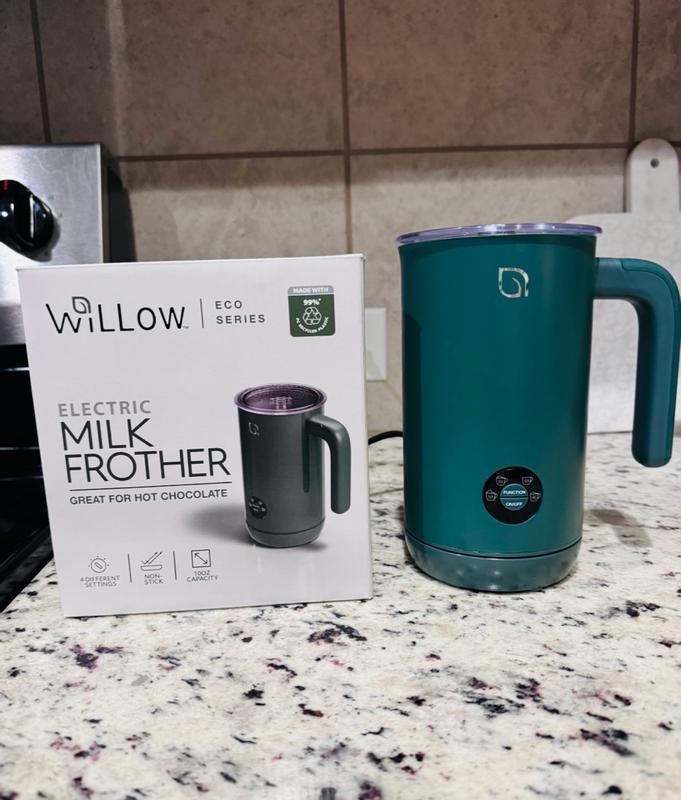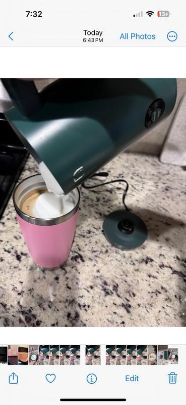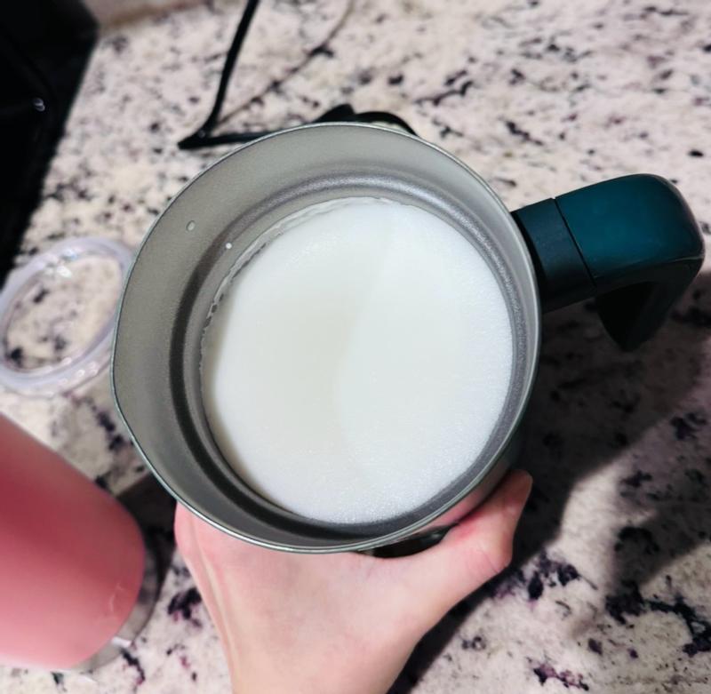 The nice thing about the Frother is that it has multiple settings. I have only tried it on the cool setting so far. It made more of a film than froth, similar to a handheld, but I’m guessing with the warm setting, it will be better. The machine stops automatically when done.