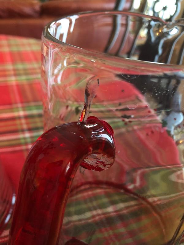 I am very pleased with the construction and the appearance of the pitcher. It matches my New Pfaltzgraff Christmas winterberry glasses perfectly. I am very pleased.