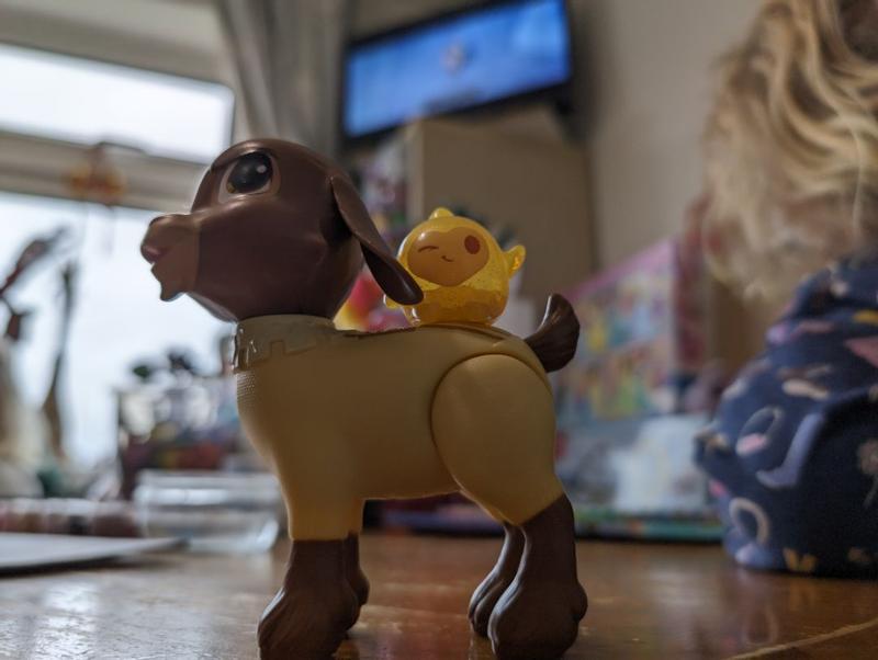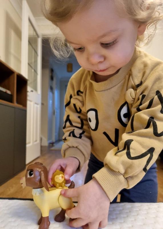 My girl loves this little toy, it involves some interaction with kids, when she puts the star at the back of Valentino or on top of its head, it would create some sounds, so it makes it more fun to play.