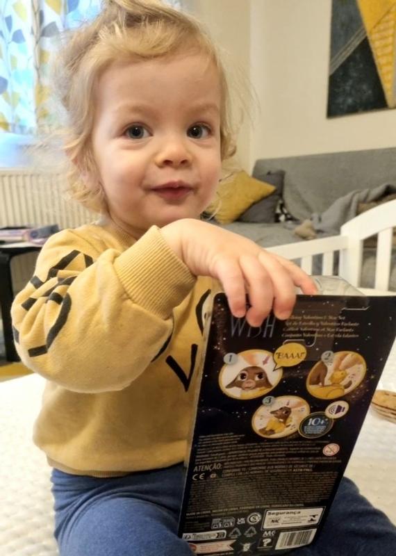 girl loves this little toy, it involves some interaction with kids, when she puts the star at the back of Valentino or on top of its head, it would create some sounds, so it makes it more fun to play. Great features that will keep your child entertained for hours. Very impressed! Easy to attach the star but would worry that it could be easily lost. Button on his head makes it very accessible for little fingers