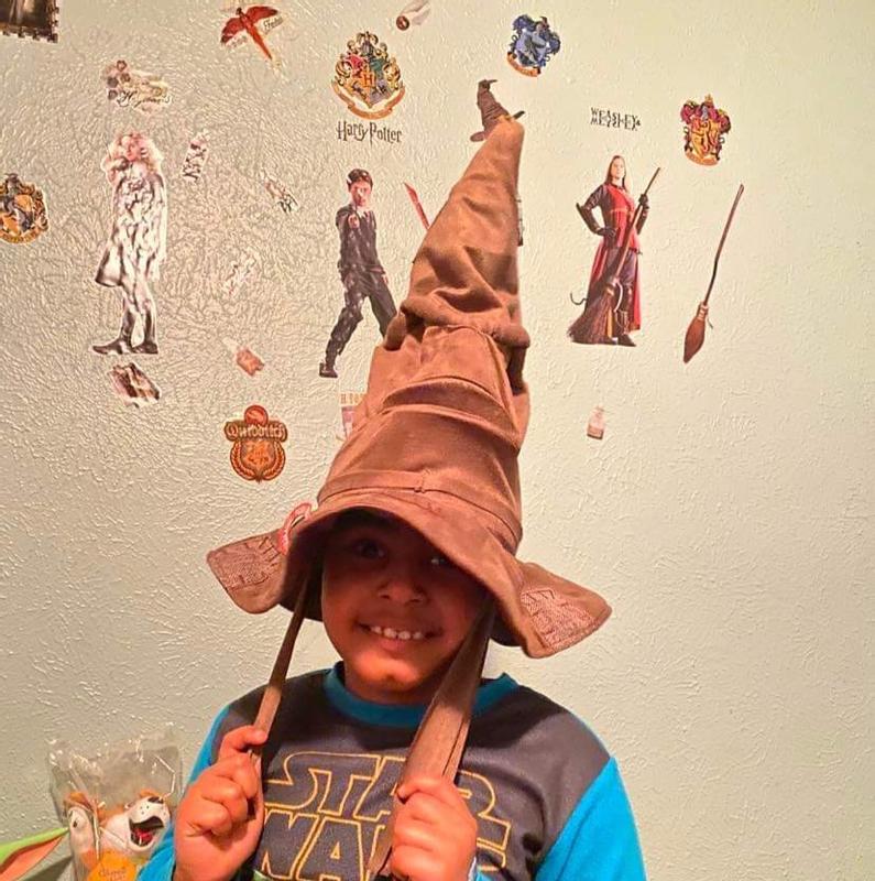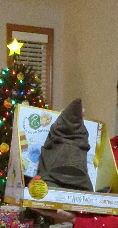 Very cool sorting hat with several phrases and it moves too! But it says each phrase in English then in French. I haven't figured out how to change that yet. A little too small for me as an adult to wear. My kid loves it though.