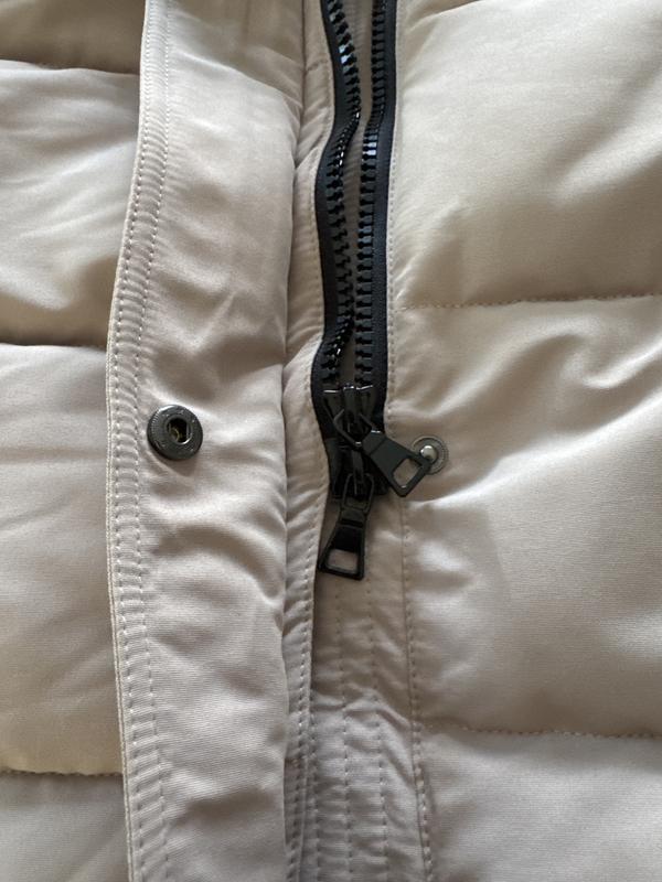 This coat has great features. It’s super warm and I love the athletic fabric cuff liners- super comfy and keep the cold out. The extra flap to cover the zipper is also great for warmth and keeping you dry in freezing rain or snow. The only reason I did not give it five stars is the awkwardness of the zipper. I like that you can unzip a bit from the bottom to make walking easier. , but the quality of the zipper is not great. It seems to be made of plastic and is very stiff and difficult to line up the channels to start the zipper properly.