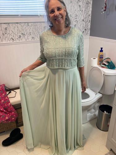 I was looking for a sage green dress. This dress is beautiful. Lovely colour and perfect fit for me bodice wise (5’ 2”/135 lbs/size 8) but too long, which I expect at my height. Unfortunately, it was formal for the event I was intending to wear it at. Sadly had to return it.