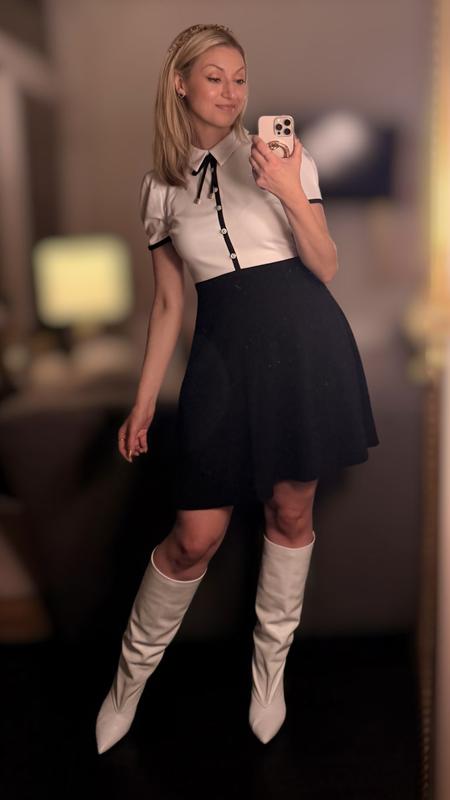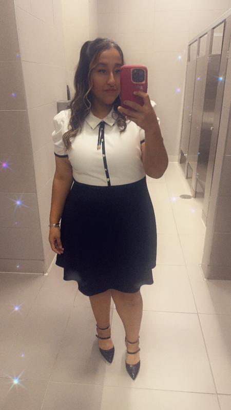 Step out in elegance and sophistication with the Karl Lagerfeld Paris Women's Collared Contrast Trim Knee length Dress. Designed with a classic collared neckline and a modern contrast trim, this dress combines timeless appeal with contemporary flair. The fitted silhouette accentuates your shape, while the smooth fabric offers a comfortable, flattering fit. Whether you're heading to the office, a business lunch, or an evening event, this dress will have you looking effortlessly chic. The sleek, minimalist design allows you to easily pair it with heels or flats to create a polished, versatile look.
