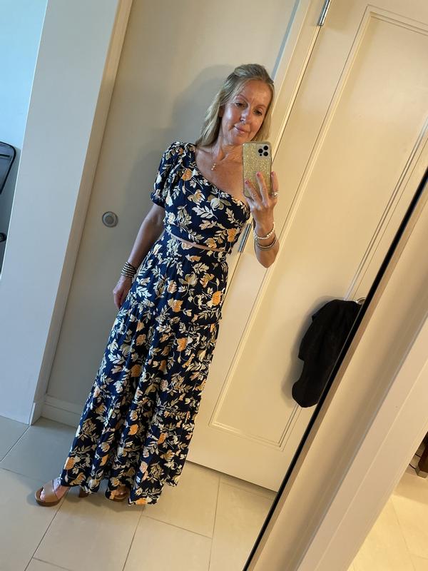 Loved the skirt, the material was nice and liked the print but the fit was off. I am on the taller side so it was a tad short (hit right above the ankle) and the ruffle band around the hip/butt area was a little tight. Also, kind of wished the elasticated waistband in the back was a little stronger.