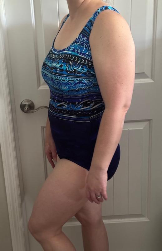 I’m loving the fit on this one piece. I’m on the plus size but I have a longer torso along with a belly so it covered everything. It didn’t let my thigh area gap or ride up. It’s a good fitting suit not tight to the point that it hurts but enough to accentuate the curves