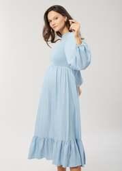 I wore this to my baby shower and it was perfect. It was so hard to find a long sleeve maternity dress in a flattering color, and this one checked the boxes and more. The fabric was substantial and the construction was quality. It definitely leans more modest/ traditional, but I think that you can style it lots of ways, so I will be keeping it in my post partum closet.