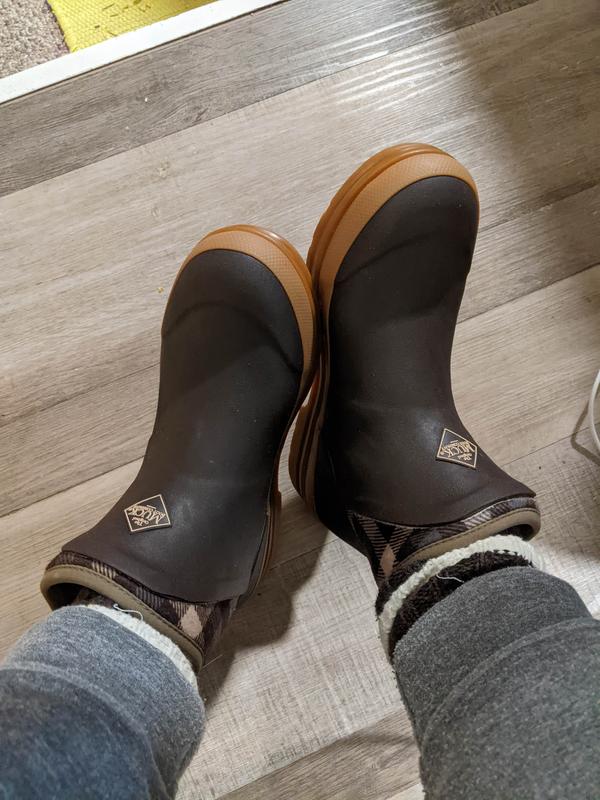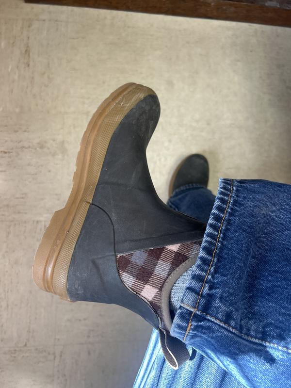 This is a great mid-weight boot. I have another pair in a different brand and those are way too heavy for me. I like that I can go out and water my yard, get covered in mud and compost and then rinse these off before heading to my porch. I also like the vintage brown plaid as a nod to yesteryear. I wear thick socks year around so I often take a size 7 women's shoe. I'm glad I read up on the reviews and learned to size down. I ordered these in a size 6 and they're perfect.