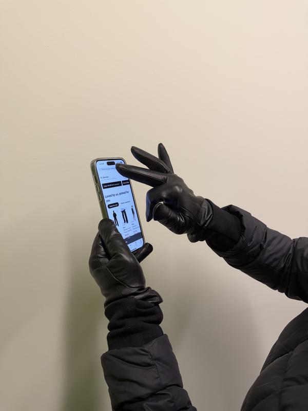 Stylish gloves with the luxury feel of smooth soft leather combined with wool lining makes you never want to take them off or be without them in the cold. And you won’t have to! Fingertips are phone friendly no matter which finger you choose. All made with the same beautiful soft leather all over. Sizing was perfect, it even allowed a little extra room for fingernails.