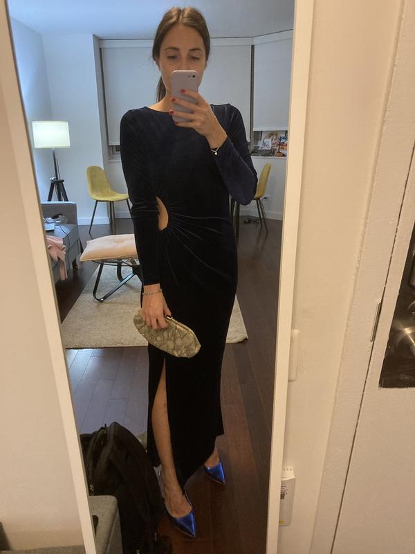 Love this dress-flattering and comfortable! So many compliments all night long.