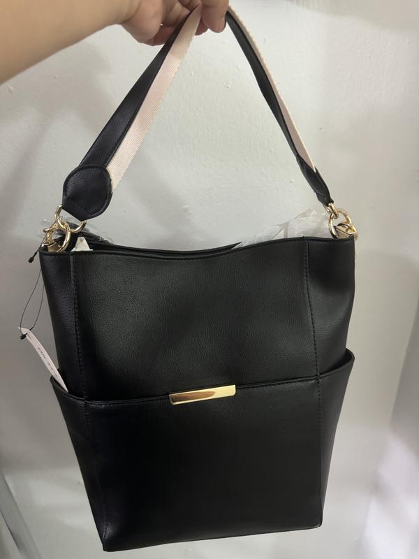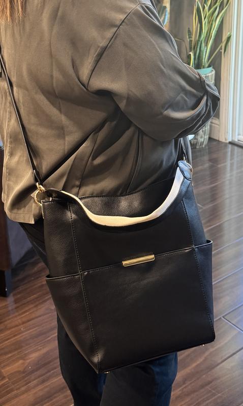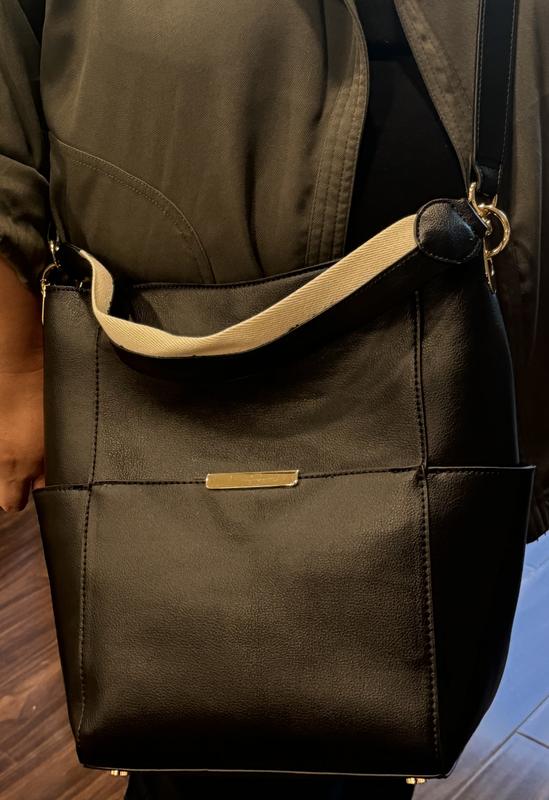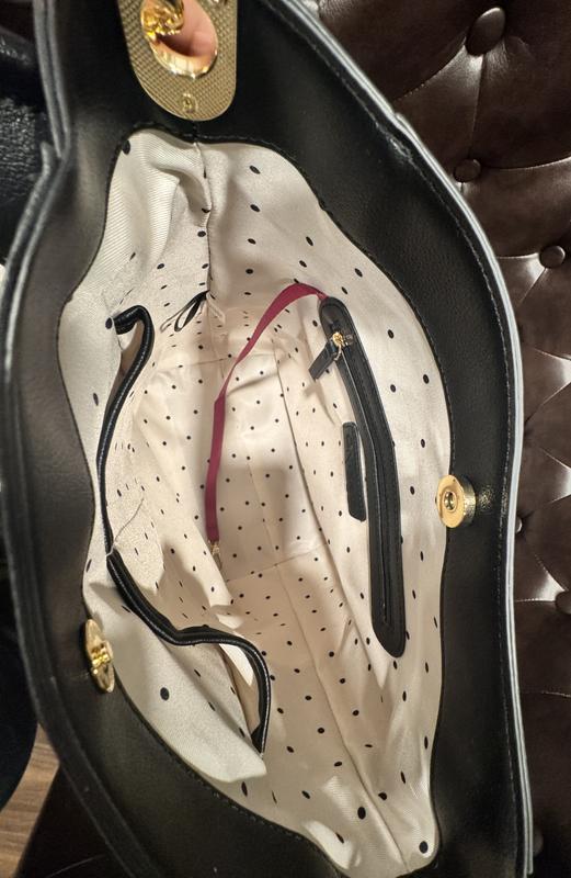 I purchased this handbag in red to carry during the holidays. This bag was very attractive. I carried the bag three weeks and one of the rings that the handle attaches to broke. After closer examination, I realized the hardware was not metal, but plastic painted with a metal finish. I threw the purse away. Stay away from On 34th.