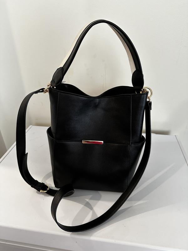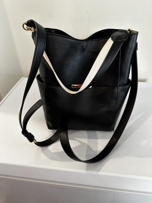 The bag is stylish and has a large storage space. Perfect for casual or formal look. I wish instead of white shade it could be same shade; still I loved the bag!