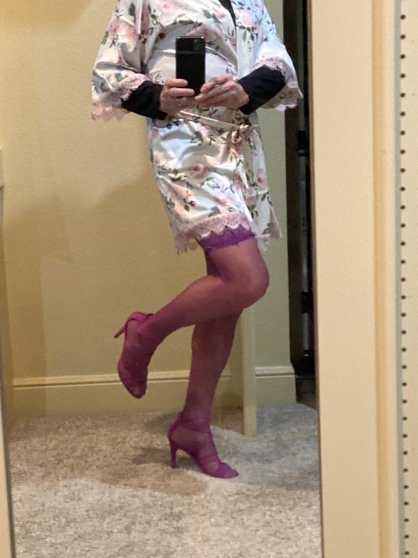 - 3/4 sleeves and hem are trimmed in pink eyelash soft lace