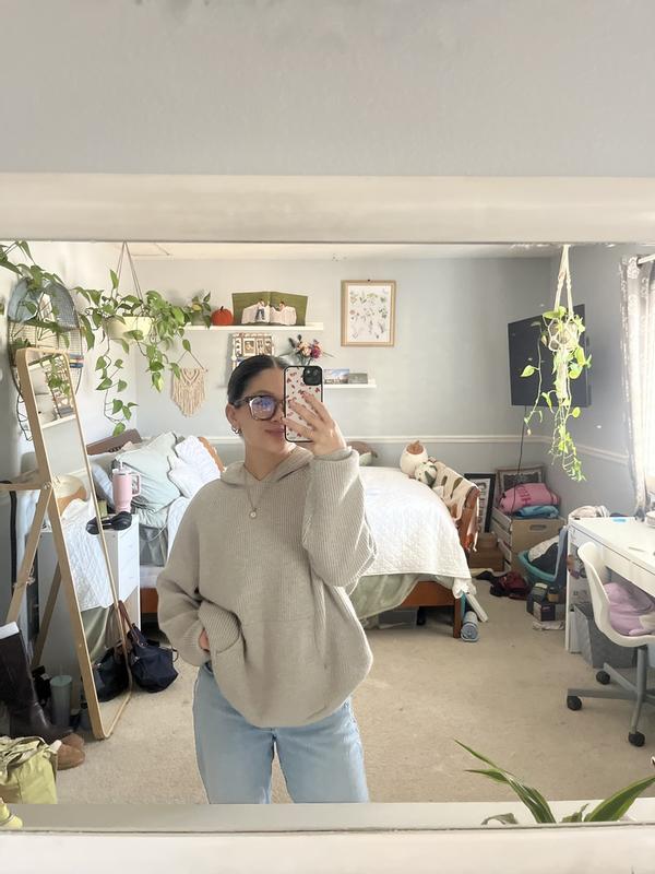 I don’t normally like thick and chunky sweaters. I feel bulky in them. However this sweater is just that, thick, chunky and oversized, but I love it! I also got the matching pant. Together they’re amazing. I put them on and it’s like you’re wearing a cozy blanket over your body! I read other reviews of piling and I’ve owned mine for over six months and all I do is wash it inside out. No problem! I’m online today getting ready to buy another color! Pants run big and are heavy but come with a drawstring. I normally wear a size L on the top but ordered a Medium and I still have room. Pants I like baggy so I kept the