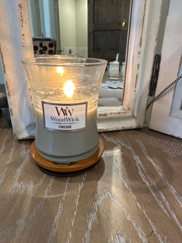 The WoodWick Candle in the scent Fireside is pure comfort in a jar! The scent is perfectly balanced — a mix of smoky woods, amber, and a touch of sweetness that feels like sitting by a cozy fireplace. The crackling wooden wick adds such a soothing, realistic sound that makes the whole experience even more relaxing. It burns evenly and fills the room with a beautiful, lingering aroma. This candle is a must-have for anyone who loves warm, comforting scents and a cozy atmosphere!