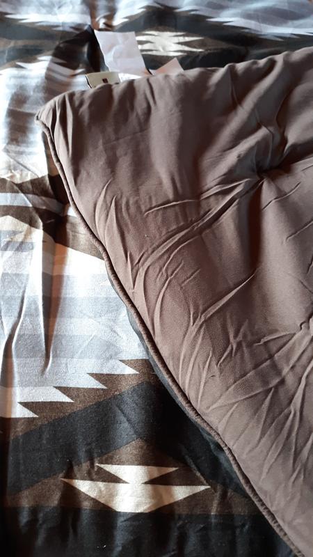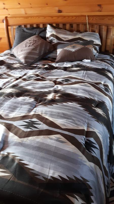 In love with my new Woolrich Bitter Creek Comforter Set. The colors are vibrant and I love the design, it is simple but gives character to the bed. The material feels soft and of good quality. The bedskirt is a solid brown and is soft and fits perfect around the boxspring. I like that there are stitches throughout the comforter so the material stays in place and has less tendency to clump up. Probably my favorite feature is the material buttons on the shams.