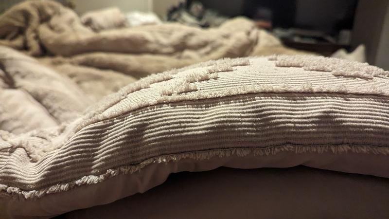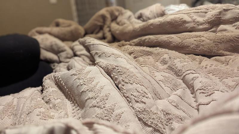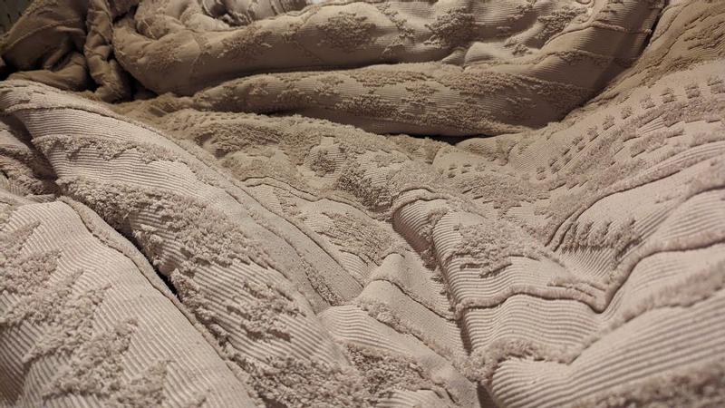My husband and I love this bedding set. It's super unique in that it has a textured design on one side that is super cool. It's great quality and super warm without making you too overheated at night. The pillow cases also have buttons on the back to fully secure your pillows which I find super handy. My husband is super picky about bedding designs, a lot tend to seem super floral and girly but this was a huge hit with him.