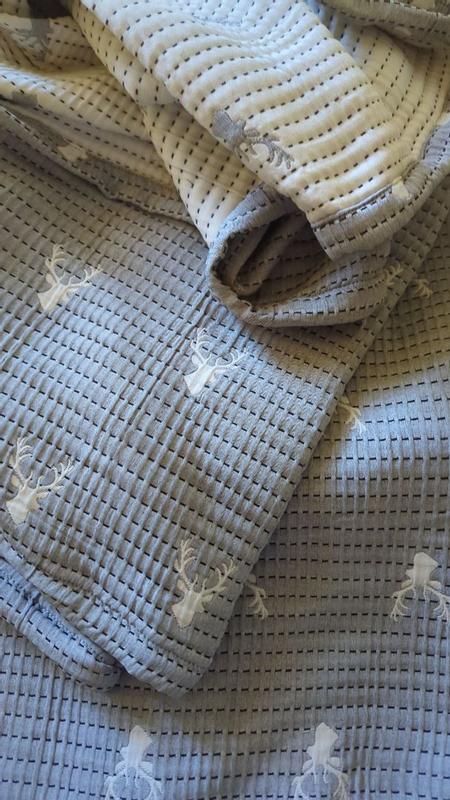 My husband loves it so soft and very comfy. We love the deer design it goes with our theme of our room. Very well made not to thick. Very well made and fits our bed perfectly