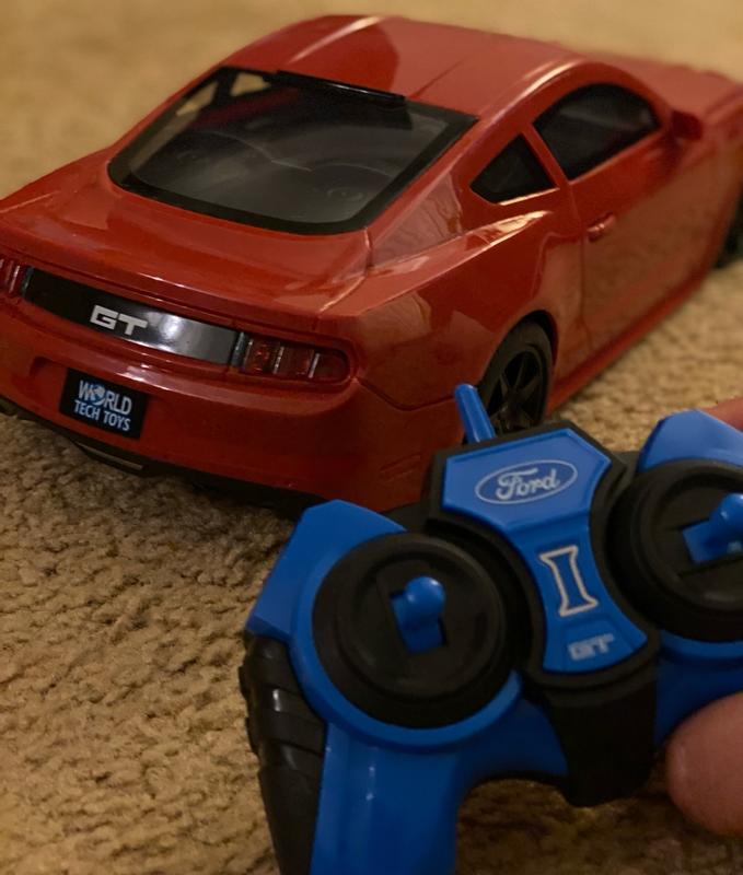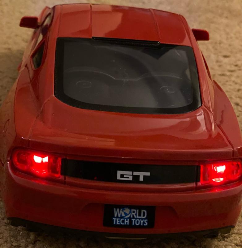 World Tech Toys makes the coolest Mustang GT Electric Remote Control Car. It works like a breeze. It’s super speedy and the brakes really work. It hugs the corners like nobody’s business. The tires really feel like tires. Love the hazard lights love the brake lights the front lights. It’s super cool whether you’re an adult or a child and you have a passion for sports cars especially mustangs you are really gonna love this remote control car. If you’re a parent it brings your nostalgia back. It takes two AA batteries for the remote controller and four AA batteries for the actual car itself. Hours of fun!