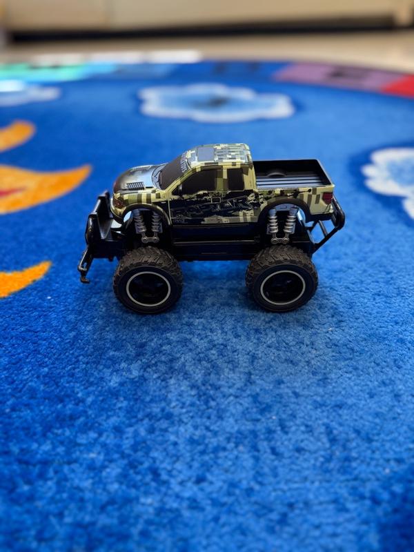 My son was very excited to receive this toy! He couldn’t wait to get it out of the box and to play with it. The design is very well done. It looks like every little boys dream monster truck. He loved the camo. The truck itself didn’t perform the best. The control is hard for his little hands ( he is 4) to use to turn the truck, and it got stuck very easily. Even in the drive way! The batteries didn’t last very long either. Overall, I think it would be a nice toy for someone’s first remote control car but it didn’t perform the best and my son got frustrated with it easily.