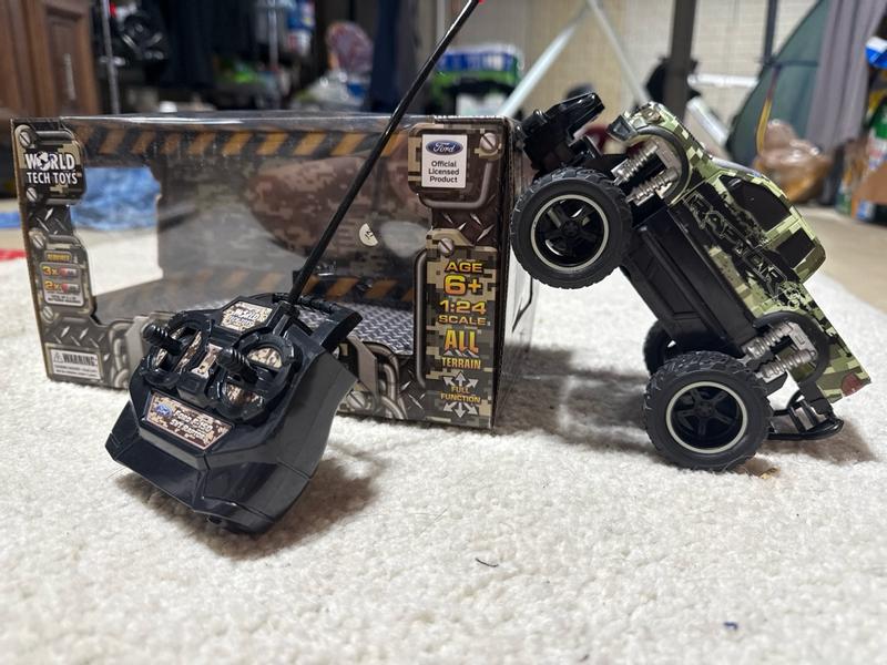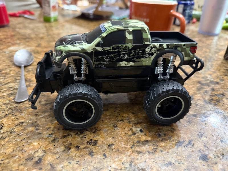 The Ford f150 svt raptor RC truck is a pretty good toy. It is an identical replica which is very unique. The truck itself is fun to play with for my 7 year old but he wished that it was a little faster. Seems like the truck is sluggish even with new batteries. The other part I wish that was improved was that it had a rechargeable battery in lieu of AA. Fun toy but could definitely improve. My son did enjoy showing his brothers his new truck and granted that he loves trucks in general, this toy made his day.
