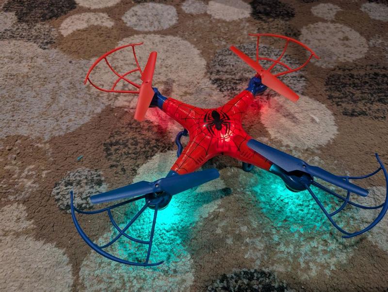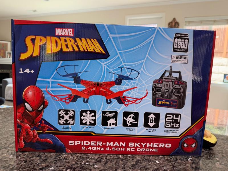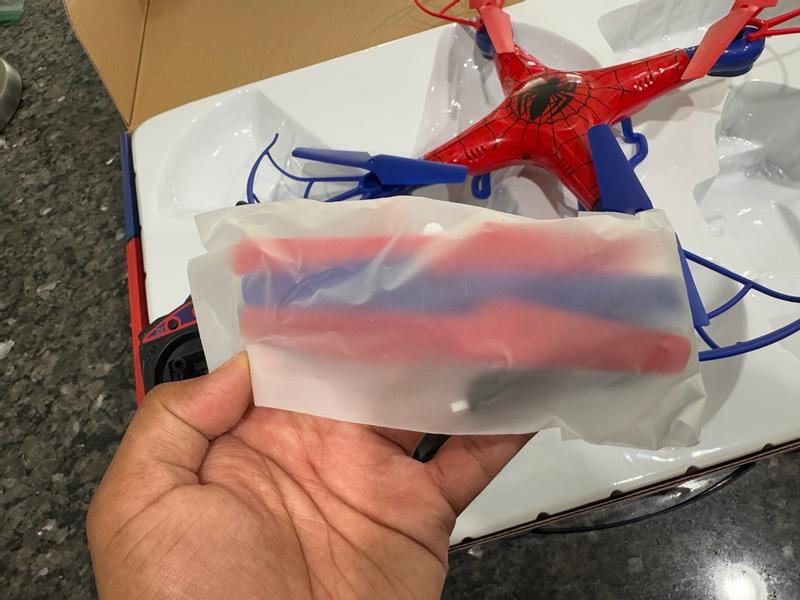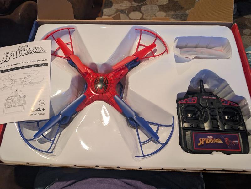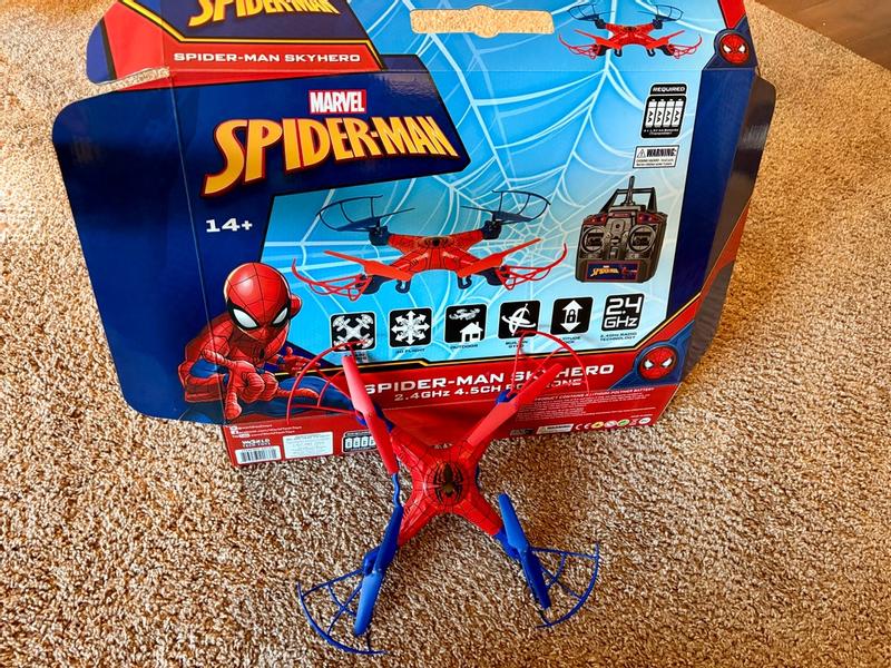 I was pleasantly surprised with this Spider-Man themed drone. The packaging was impressive—it came well protected and even included extra wings, which is always a nice bonus. The whole package is loaded with Spider-Man decals, making it really appealing for kids and fans alike. The drone itself looks fantastic. It’s bright and colorful with strong red and blue Spider-Man designs, plus a light underneath that makes it extra fun to fly, especially in lower light. The controller is large and comfortable to hold, though keep in mind you’ll need to provide your own AA batteries. In terms of performance, the drone offers a decent run time for play sessions. The only drawback is that it comes with just one rechargeable battery, so you’ll likely want to pick up an extra one for longer play. Overall, this is a solid RC drone for Spider-Man fans. My kid absolutely loved it and had a great time flying his very own Spider-Man drone. It’s fun, eye-catching, and delivers a good experience for the price.