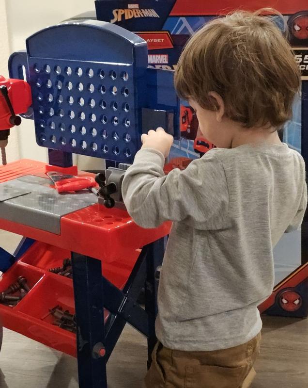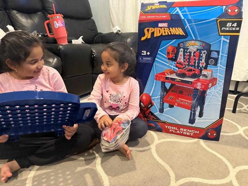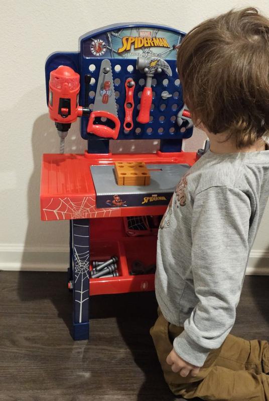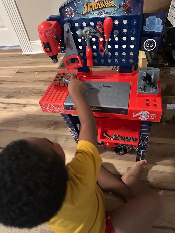 This Spiderman Tool Bench is a perfect gift for your Spiderman loving kids. The set up is easy and clear, and is made really well to the point where you don't have to worry about it breaking super quick. The car comes undone so your son or daughter can "fix" it with their tools. My son is a very sensory boy, so he loves the lights and he's been really into helping me when I have tools, so I'm happy he has his own so he's not getting hurt by the real ones. My son spends hours playing this thing which I love because then he's not bugging his siblings or being mean and it makes him happy. I am so glad I got this to try out, because it was the perfect gift for my son.