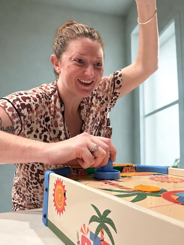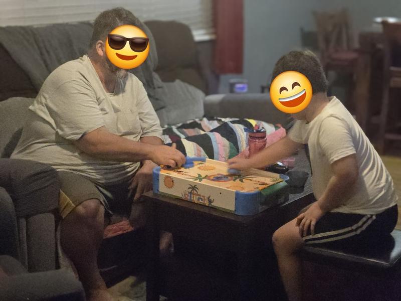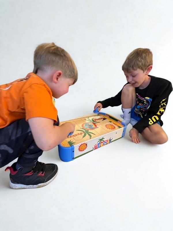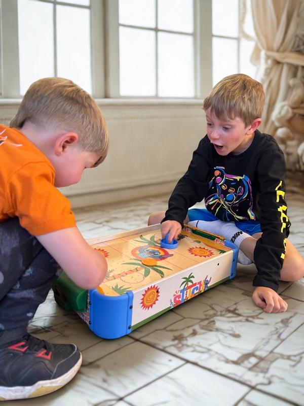This electronic air hockey table is an excellent game for young children, keeping them entertained for hours. My kids thoroughly enjoyed playing with us and each other. Its electronic and convenient design makes it easy to use and store, providing hassle-free storage.