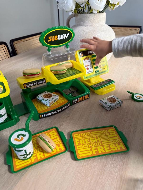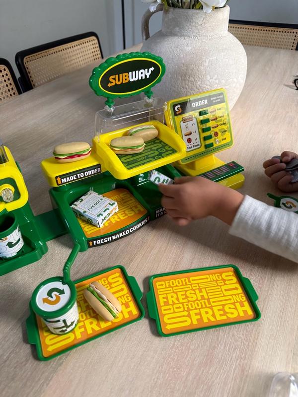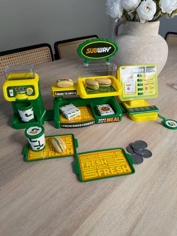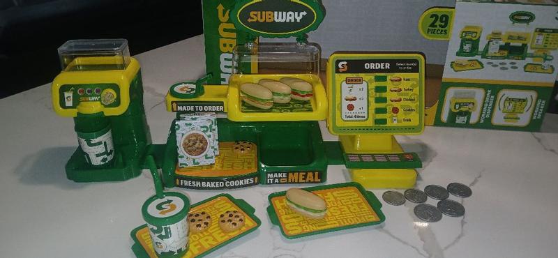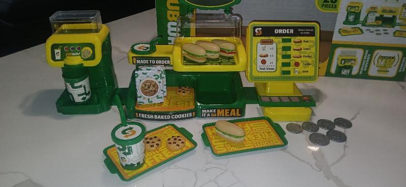 Great toy for imaginative play! My toddler loved taking our orders and playing as a server. We loved how realistic to subway it looks. If your kid eats there, they will definitely know where it’s from and will love playing with it. No assembly required, everything was ready to go. The material of the register/drink dispenser is plastic so it’s not the most sturdy. Easy to break if not careful. The sandwiches, drinks, trays and cookies are more durable. Note: it needed 2 AAA batteries that were not included for the sounds/buttons to work. Good toy for a kid that loves playing restaurant and engages in imaginative play.