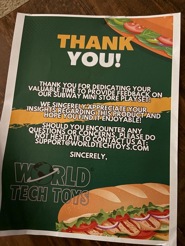 I received this complimentary in exchange for my honest review. This subway mini restaurant playset by world tech toys was so much for my daughter. It was super easy to take out of the box. Great quality and so cute. Very durable. It required a battery or two I don’t remember. When my daughter asked me if I wanted to play with her I said yes.😂 Thank you!