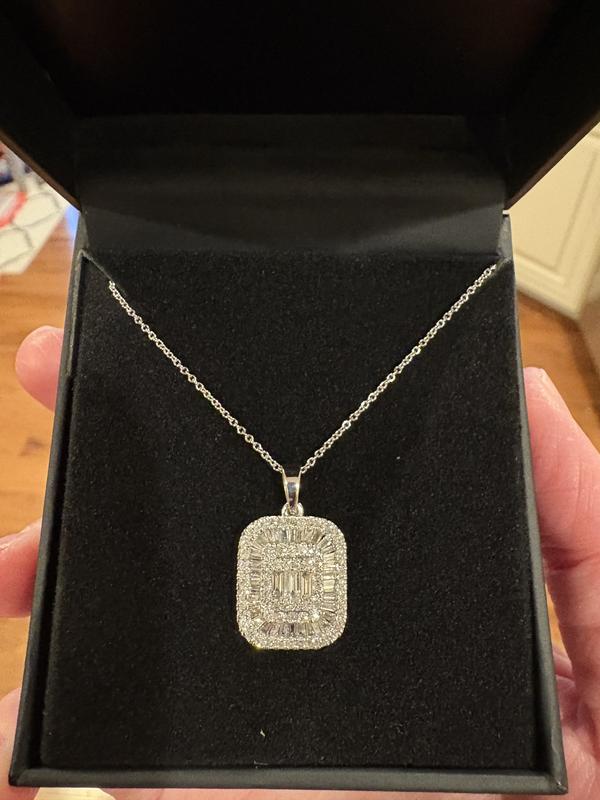 Diamond Round & Baguette Square Halo Cluster Pendant Necklace (1 ct. t.w.) in 14k White Gold, 16" + 2" extender, Created for Macy's