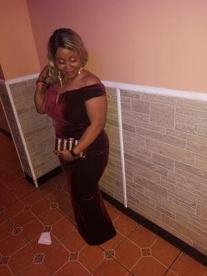 This dress is stunning! Gorgeous rich dark burgundy color in velvet, amazing fabric and fit, beautiful rouching on the side that helps hide some of the tummy area. I wore it to my company holiday party and got so many compliments I started to feel overwhelmed, lol. Literally everyone that saw me said my dress was so beautiful. It made me feel like a million bucks, buy it!