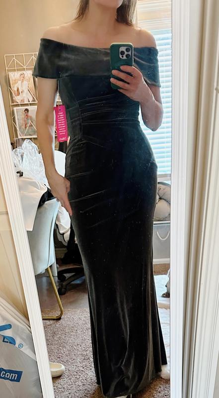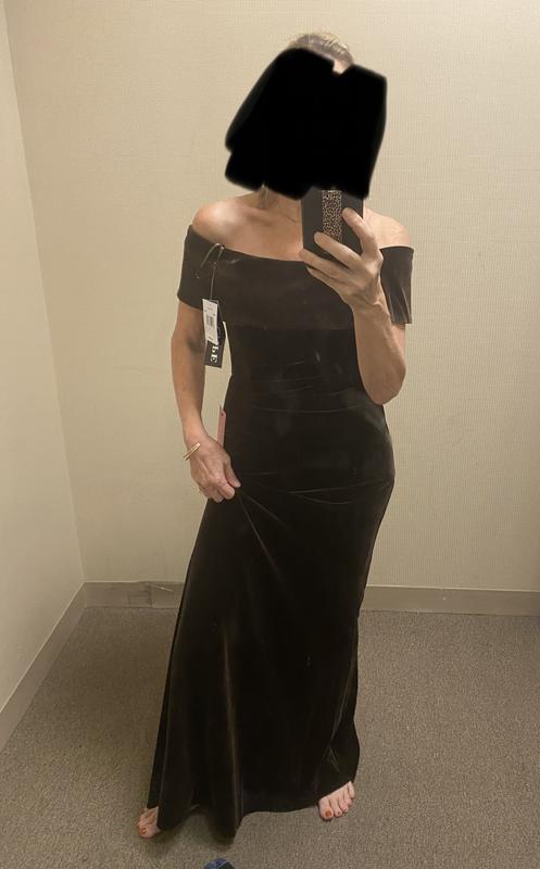 Elegant dress. Love the brown velvet because it is not common. Nice style. Fits well.