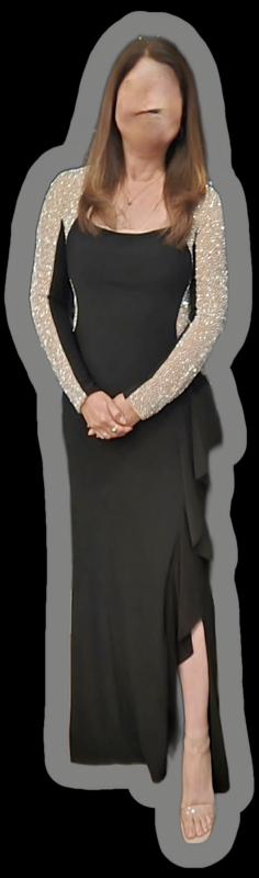 The dress cut gives you a slimming figure. I am 5'3 127 lbs and the 6P fit me well without alterations. The weight of the dress did not bother me. Wear with a strapless bra and seamless underwear. I gave it 4 stars for the material. Overall a great dress