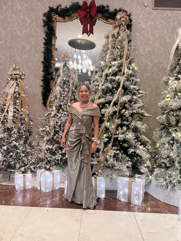 Pretty shimmering dress….not sure if it sheds too much glitter. That’s the only problem with this dress. I’ll be sharing all my glitter with all the wedding guests….