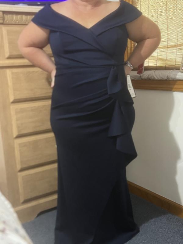 Plus Size Off-The-Shoulder Scuba Crepe Gown