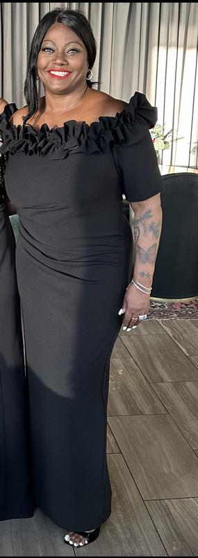 This is a beautiful dress with cinching ability in the waist area. Zippered back draws attention to your curves. Purchased in black for a black tie function, many compliments Top offers support and coverage for larger busted ladies.