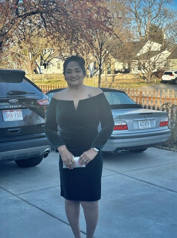 This dress felt like velvet and was a perfect fit. It stretched enough for me to feel completely comfortable.