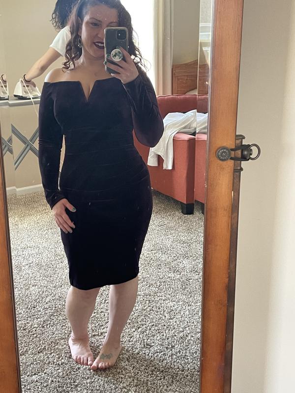 Velvet Off-The-Shoulder Sheath Dress