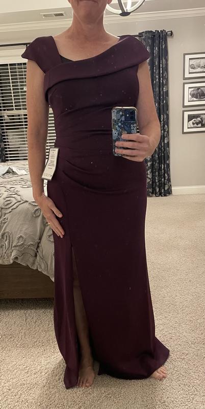 This dress is super flattering with the ruching in the front and back! The asymmetrical neck line is interesting yet classic. I’m wearing it to my daughter‘s wedding next summer.