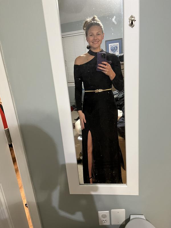Women's Cutout Leg-Slit Long-Sleeve Gown