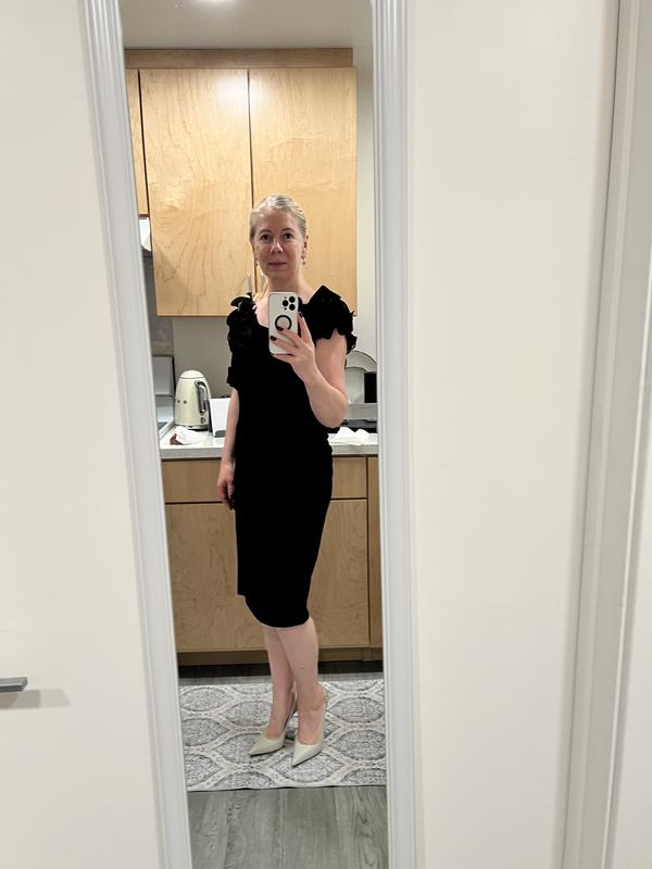 I love this dress and the quality is superb. I purchased the dress to wear to my son’s wedding but unfortunately, I need to go a size up. Is very form fitting and the length is perfect for a 5’2” 60 year young woman. I got this dress on sale but I’m not sure if I can get the same price, what a shame the size I first bought didn’t fit.😮💨