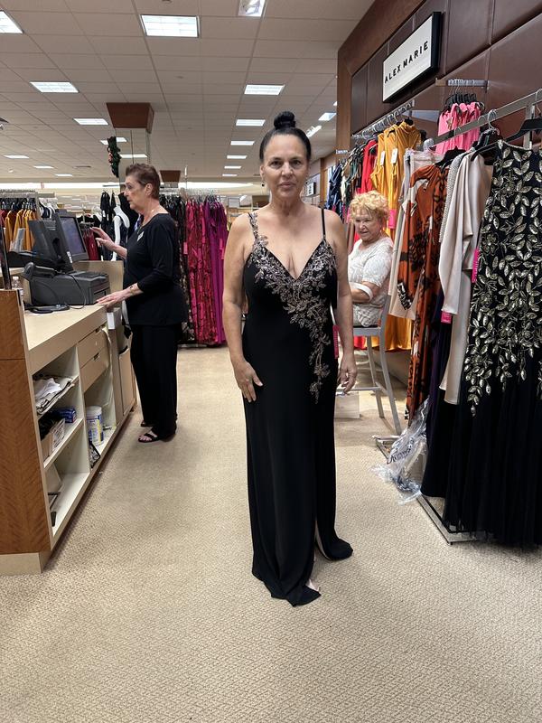 I got this dress at Macy’s for 2 gala’s that we have coming up, it’s very comfortable, I absolutely love that it’s fully lined inside with very comfortable lining. It’s very elegant & I ordered a black fur collared shawl to cover my shoulders if I get cold.
