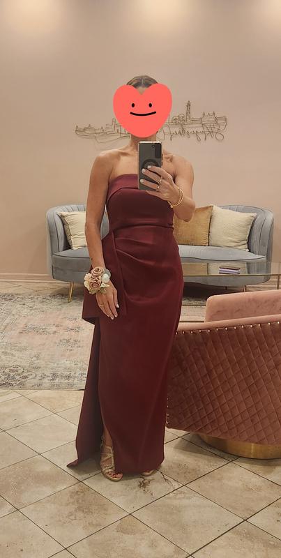 There are things I loved about this dress and things that I wasn’t sure about. I am a 34C bra and the size 4 felt it could’ve been a little snugger around the top. I felt like I would be pulling up the top of the dress all night long and my boobs would be falling out. But the waist fit perfect and if I would’ve gone a smaller size, It would’ve been too tight. The material is great. The length was great. The color was a bit darker than it looked online and not as shiny, but still pretty. Unfortunately, because of the top I’m gonna have to return it. I would’ve kept it if it fit a bit snugger and I don’t want to pay to have it altered. I did love the side detail! I’m 5’4 and with small heels the length was good.