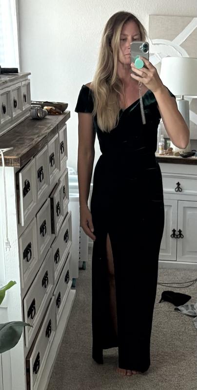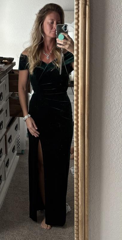 Women's Velvet Off-The-Shoulder Leg-Slit Gown
