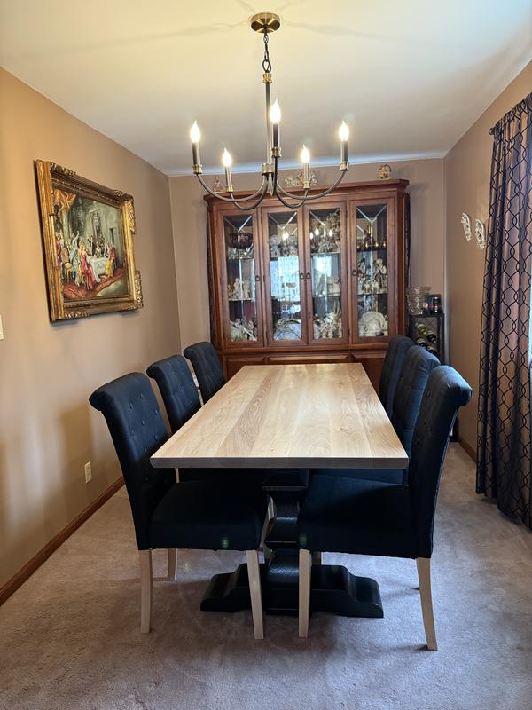 2PCS High Black Classic Fabric Upholstered PU Leather Dining Chair