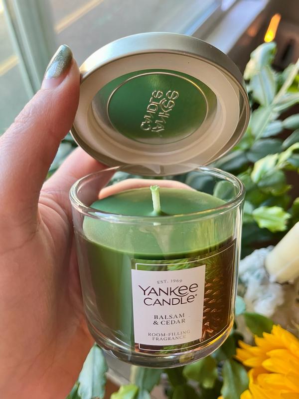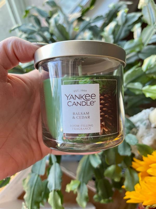 I’ve burned the Yankee Candle Balsam and Cedar signature small tumbler a few times, and I absolutely love it. The scent fills my room with a warm, woodsy, and slightly sweet smell that reminds me of Christmas time. The packaging looks elegant and makes a nice decorative piece, and the green color of the wax is beautiful. It burns evenly and lasts a long time for its size. The quality feels premium, but the price is still very reasonable. Definitely one of my favorite candles!