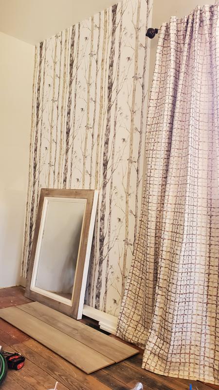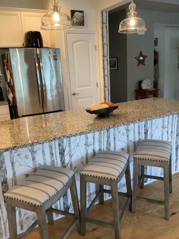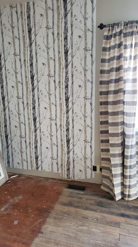 Not quite as easy to install as it looks but that might also have to do with the fact we have never wallpapered before. It is great you can pull it off and move it, which we did with the very first strip, until it is right. Love the way it looks!